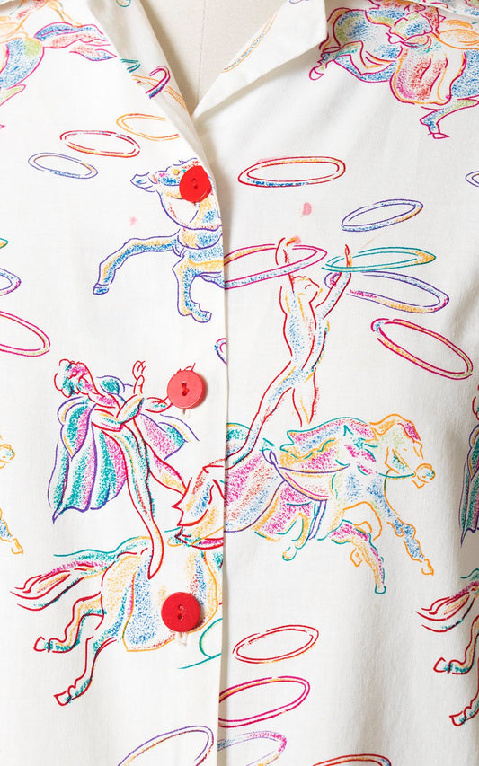 1950s Style Circus Novelty Print Cotton Blouse | medium/large