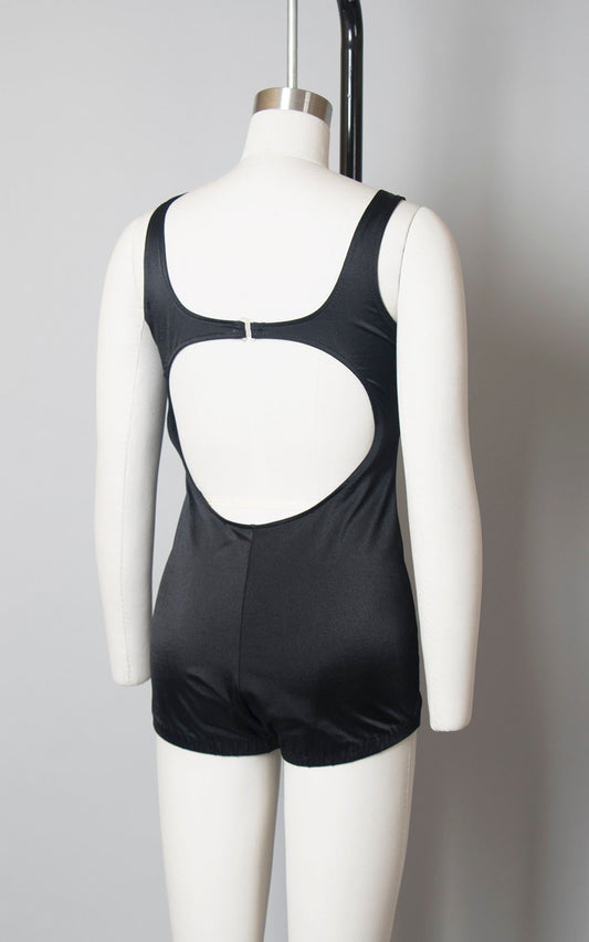 $50 & UNDER SALE || 1970s Black Open Back One Piece Swimsuit | small/medium
