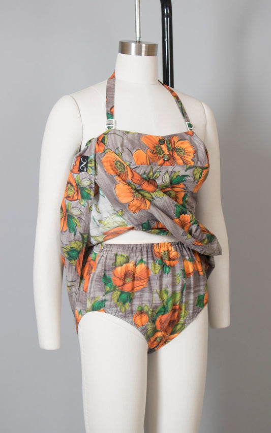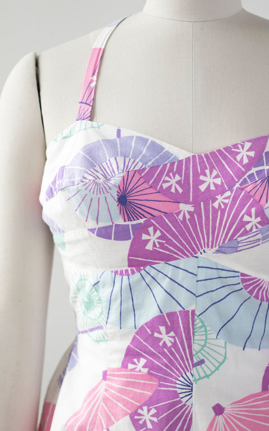 1960s Parasol Novelty Print Smocked Cotton Romper | small/medium