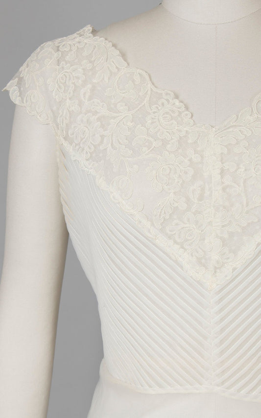 1950s Sheer Cream Nylon Lace Pintuck Blouse | medium