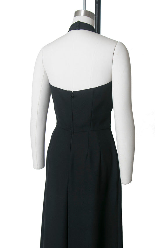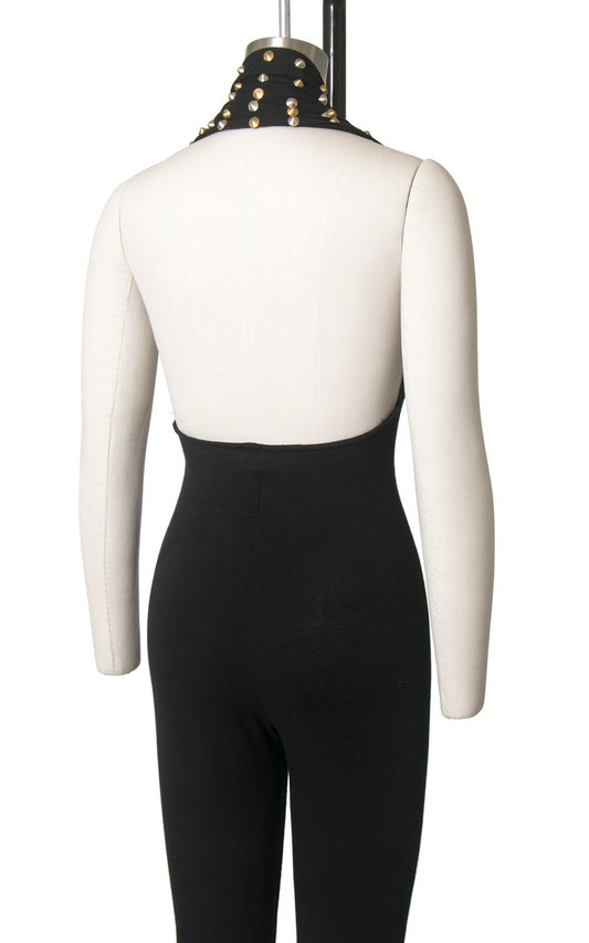 1980s Metal Studded Black Stretchy Halter Catsuit | x-small/small