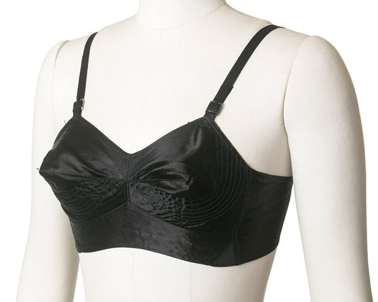1950s Black Satin Circle Stitch Bullet Bra | 30B/C - 32B/C