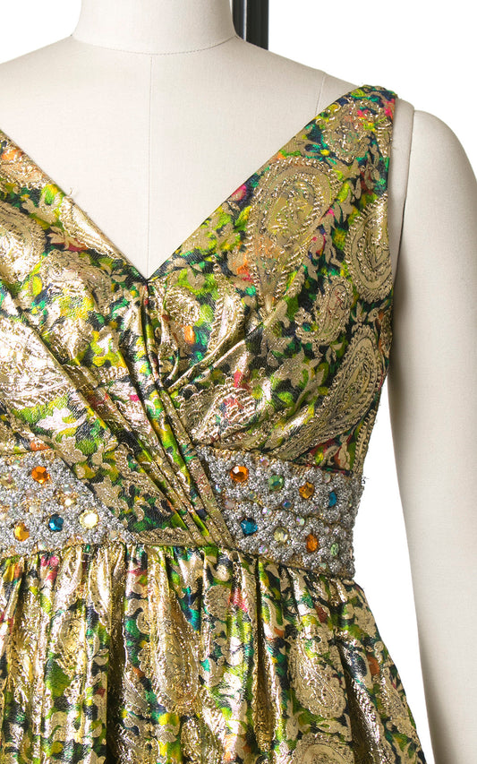 1960s Metallic Paisley Brocade Rhinestone Palazzo Jumpsuit | x-small