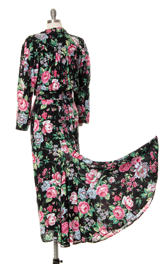 1980s KAREN ALEXANDER Floral Mermaid Train Dress | small/medium