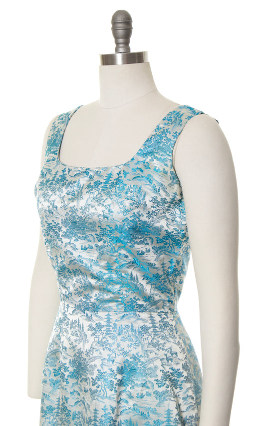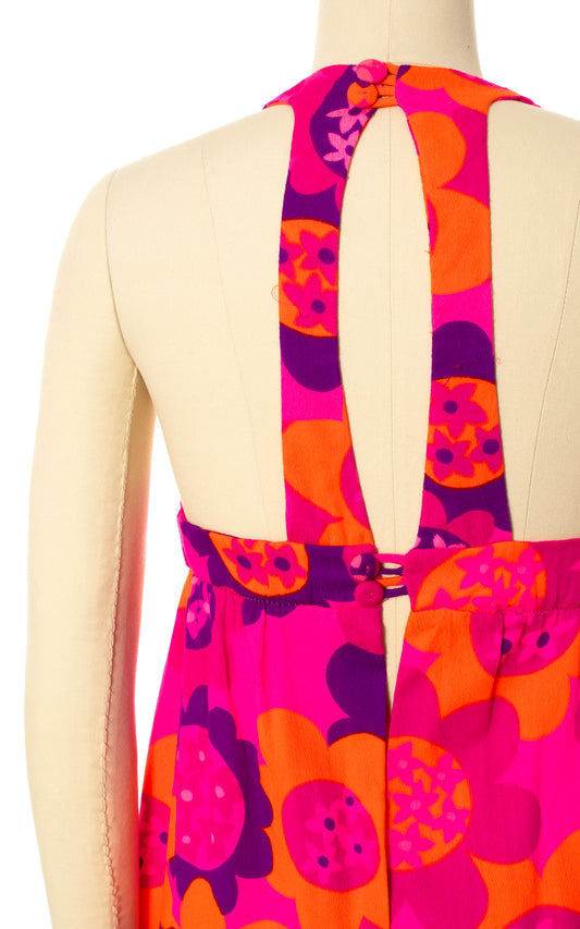 1960s Psychedelic Hawaiian Floral Barkcloth Maxi Dress | x-small