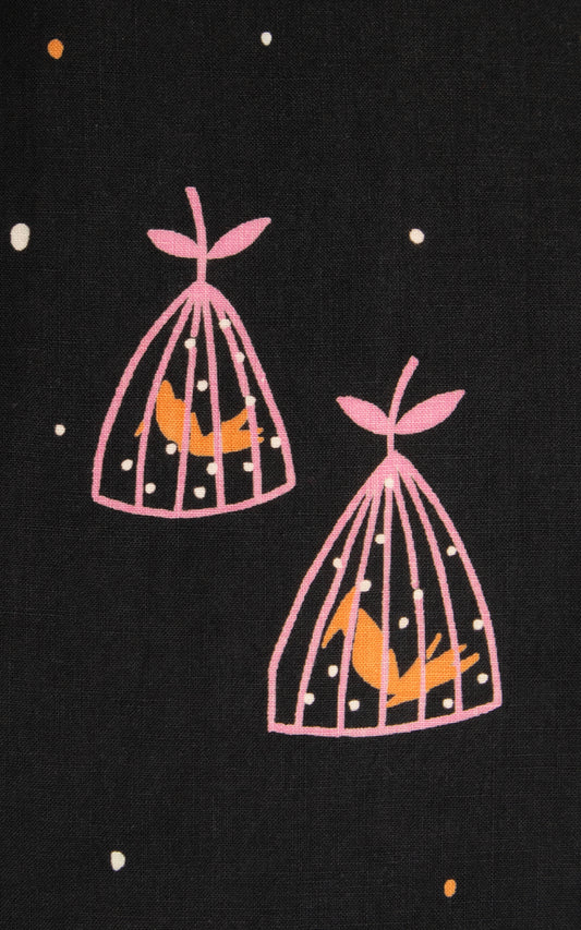 1950s Caged Bird Novelty Print Shirt Dress | medium
