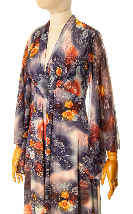 1970s Floral Angel Sleeve Maxi Dress | x-small/small
