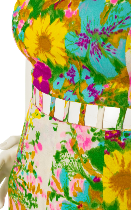 1960s Cutout Cage Waist Floral Jumpsuit | x-small