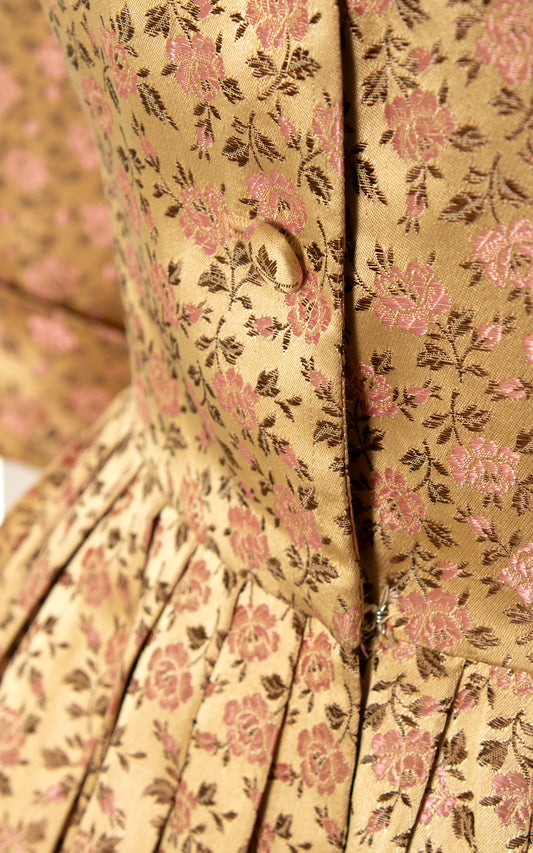 1950s Rose Satin Jacquard Shirtwaist Dress | medium