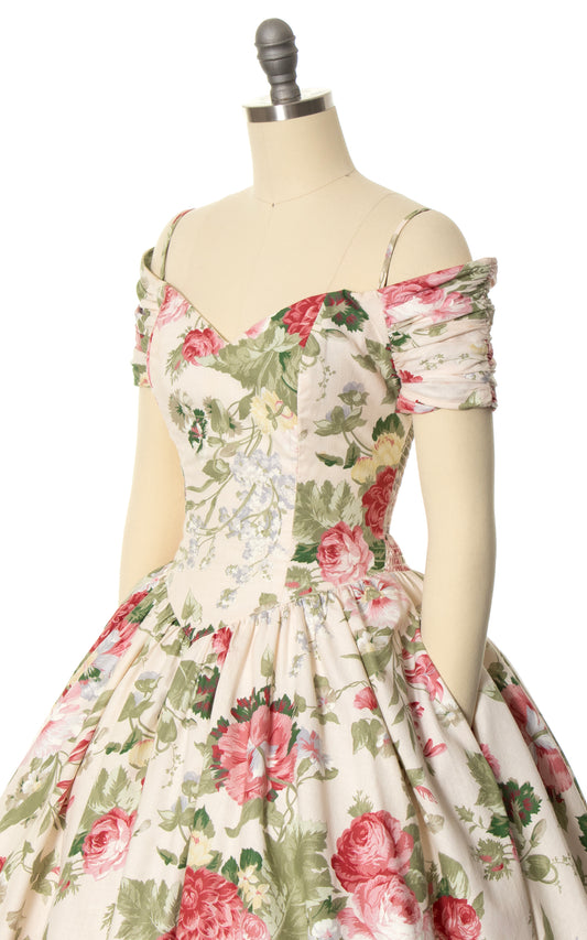 1980s KARIN STEVENS Romantic Floral Dress | x-small/small