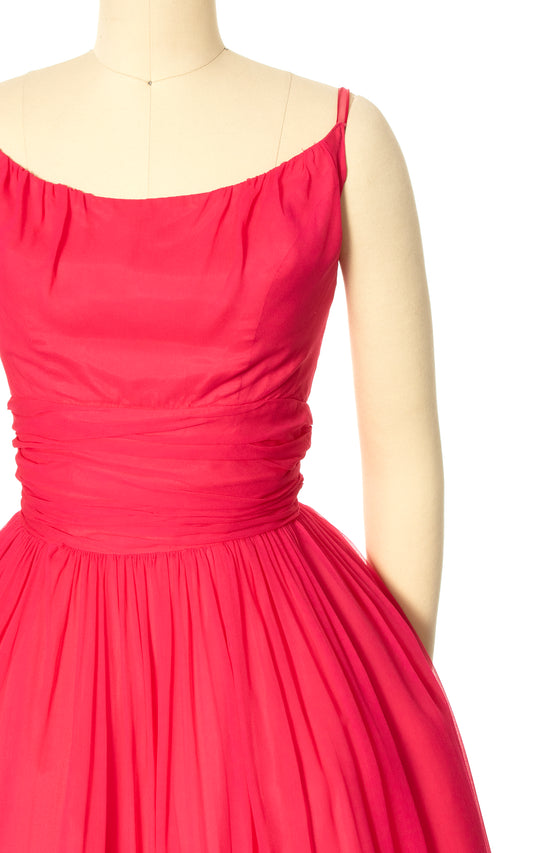 1960s Hot Pink Silk Chiffon Party Dress | small
