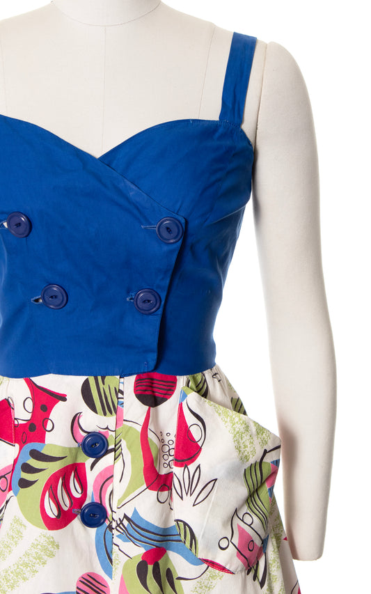 1940s WAYNE MAID Caribbean Novelty Print Smock Top | large/x-large