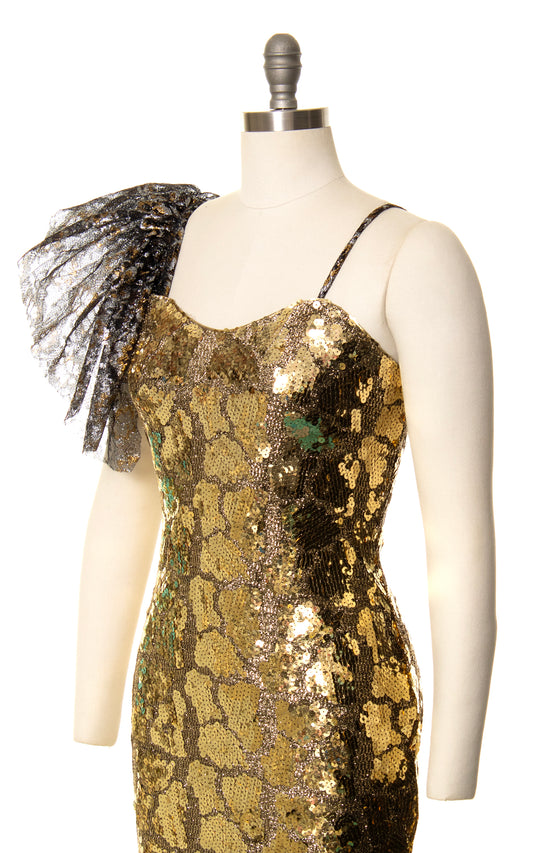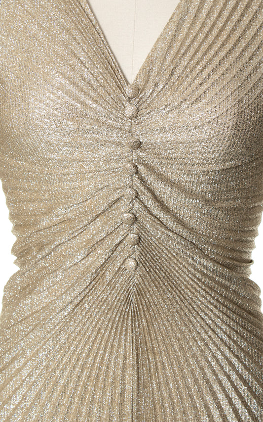 1980s NEW LEAF Travilla Style Metallic Pleated Dress | x-small/small