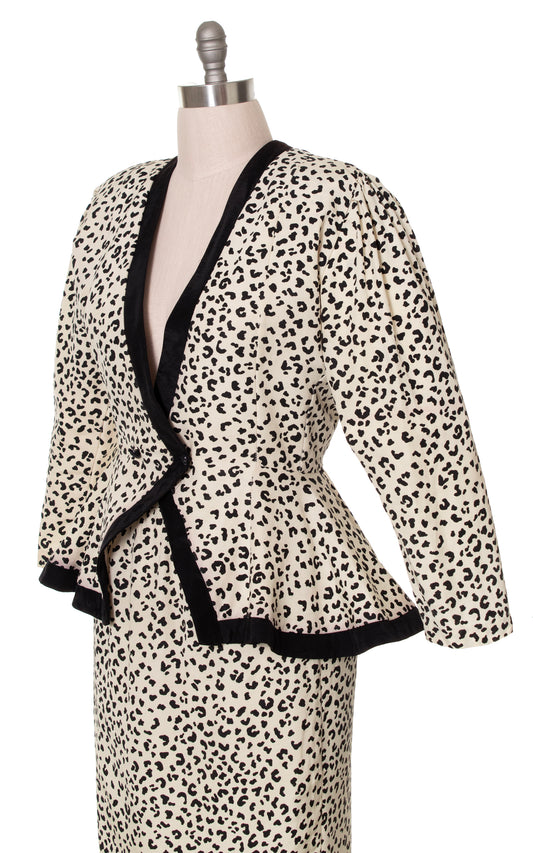 1980s Leopard Print Peplum Skirt Suit | x-large