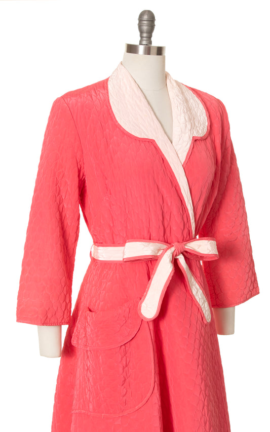 1950s 1960s Salmon Pink Quilted Robe | medium