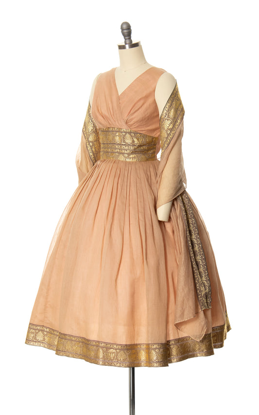 1950s Ribbon Cotton Voile Dress & Wrap Set | small