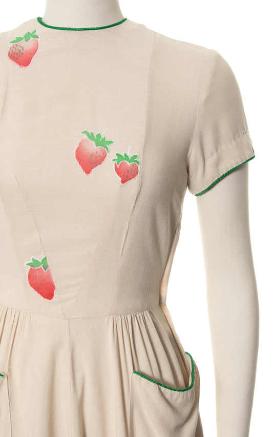 1940s Strawberry Appliqué Linen Dress | small/medium
