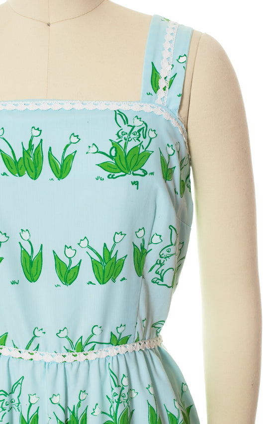 1970s VESTED GENTRESS Bunny Floral Novelty Print Sundress | small