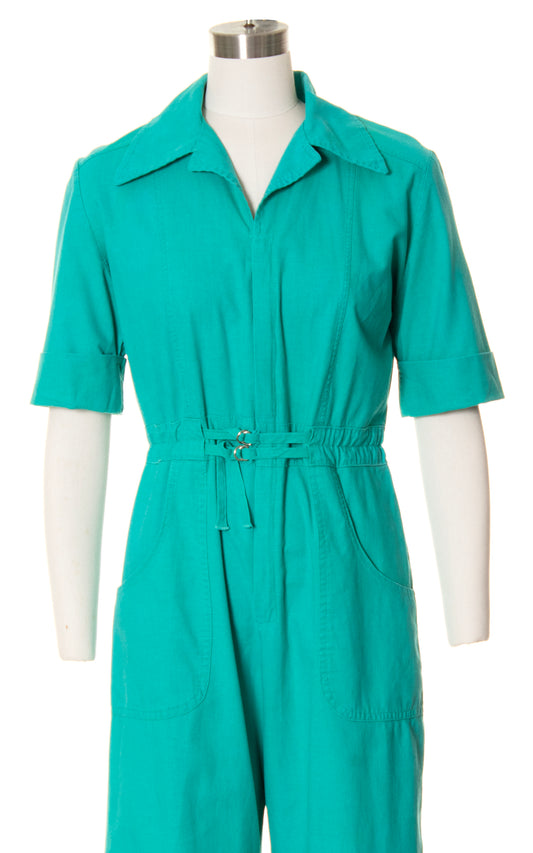 1970s Jade Cotton Workwear Jumpsuit | small/medium