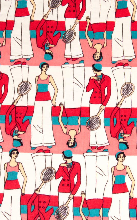 1970s Art Deco Badminton Ladies Novelty Print Blouse | x-small/small