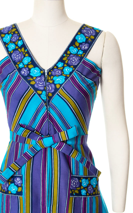 1970s Striped Floral Cotton Sundress with Pockets | small