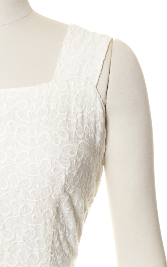 1950s Embroidered White Linen Wiggle Dress | medium