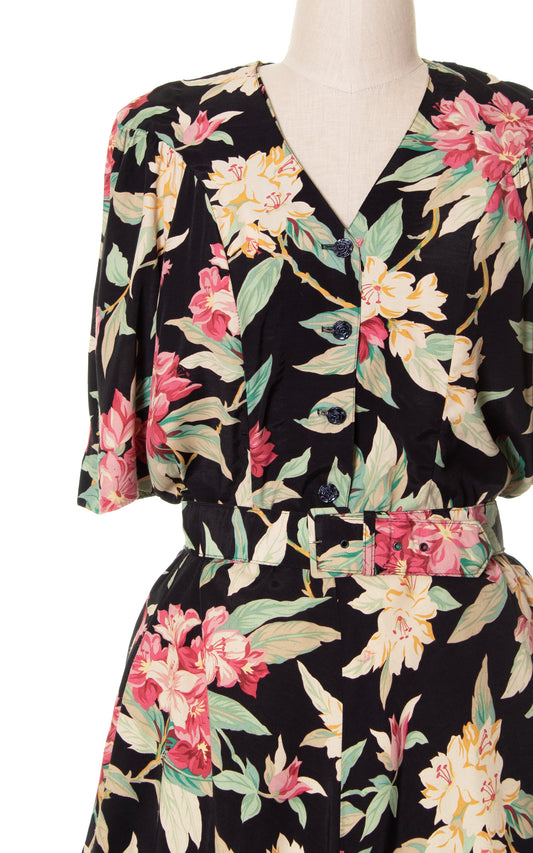 1990s Floral Rayon Shirtwaist Dress with Pockets | x-large