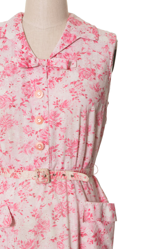 1950s Pink Floral Cotton Sundress with Pockets | large