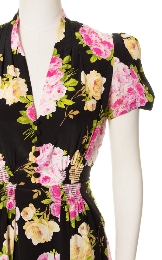1990s does 1930s Floral Bias Cut Rayon Dress | small