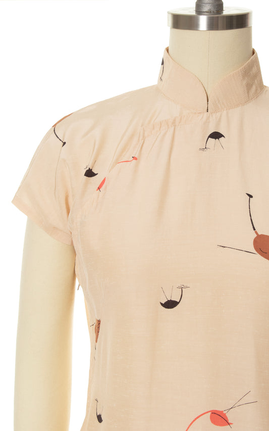 1960s Flamingo Novelty Print Silk Cheongsam Dress | x-small/small