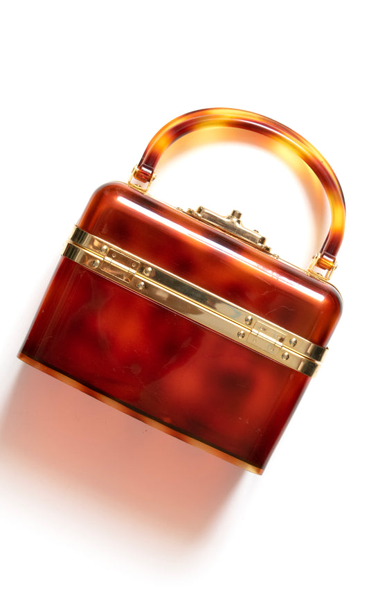 1950s 1960s French Tortoiseshell Lucite Box Purse