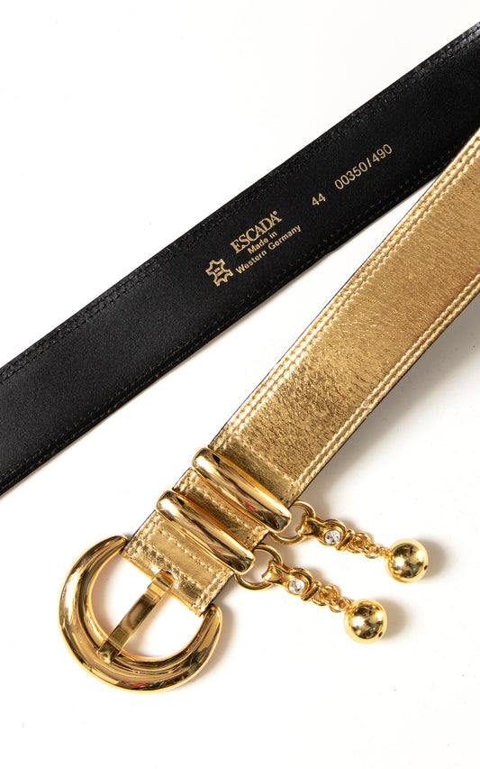 1980s ESCADA Gold Leather Cinch Belt with Charms | large/x-large