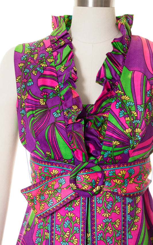 1960s Psychedelic Floral Ruffled Maxi Dress | small