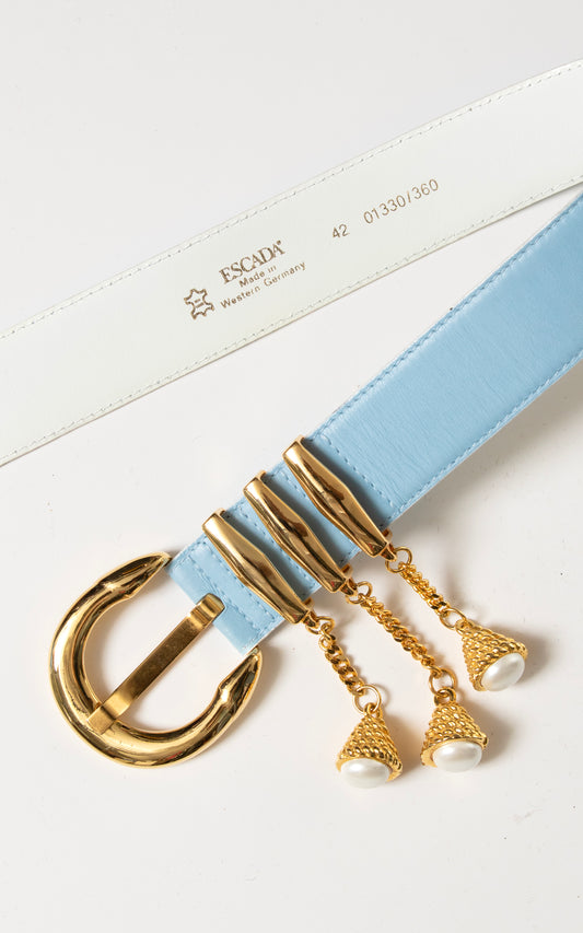 1980s ESCADA Blue Leather Cinch Belt with Charms | large