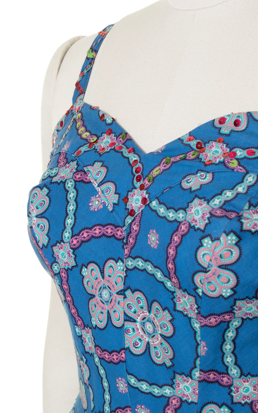 1950s Sequined Geometric Circle Skirt Sundress | small