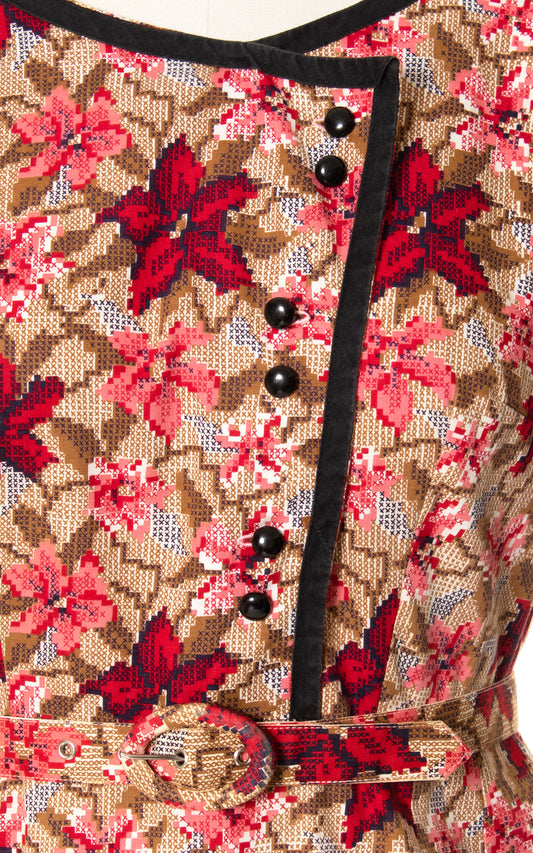1950s Floral Cross Stitch Cotton Shirtwaist Dress | medium