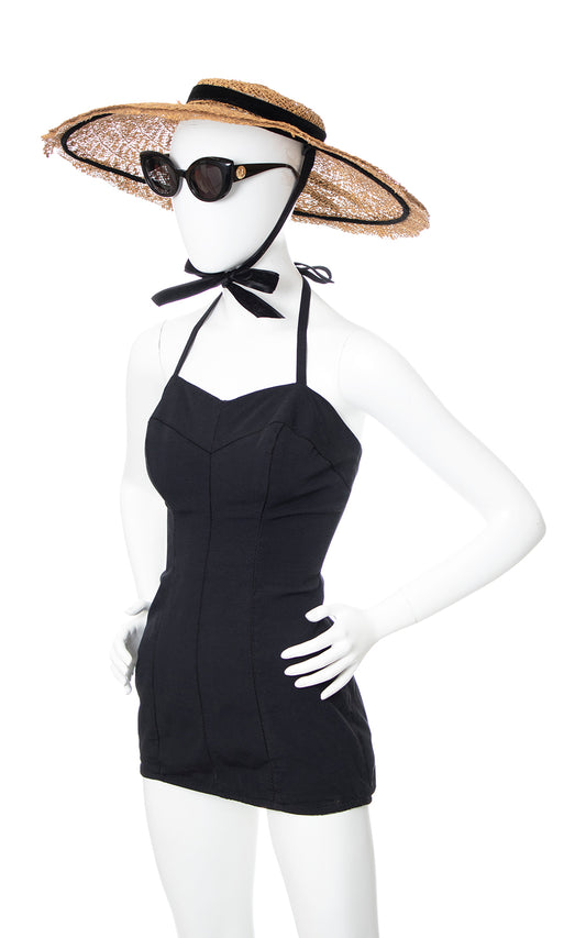 1950s ROSE MARIE REID Black Halter Swimsuit | small/medium