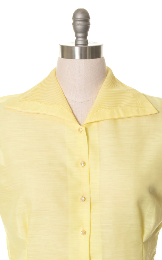 1960s Pastel Yellow Sleeveless Blouse | x-large