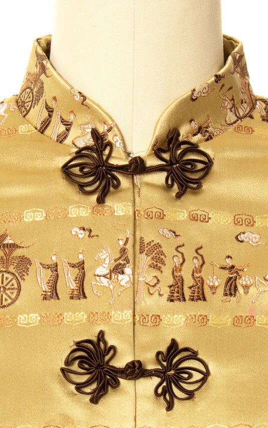 1950s Asian Novelty Gold Silk Jacquard Coat | x-small
