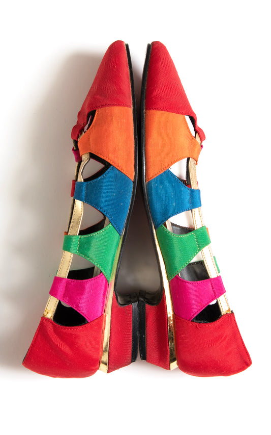 [AS-IS] 1940s Beaded Soutache Color Block Gown | small/medium