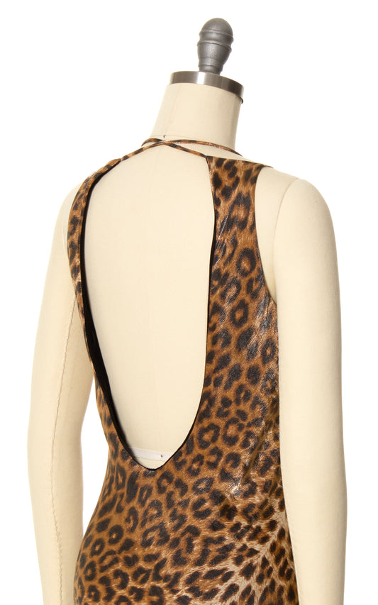2000s Shimmery Leopard Print Bias Cut Open Back Gown | x-small/small