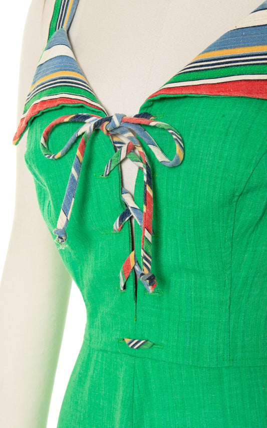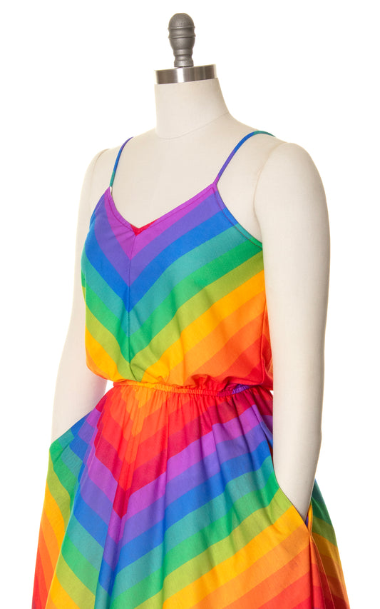 1970s 1980s Chevron Rainbow Sundress with Pockets | small/medium