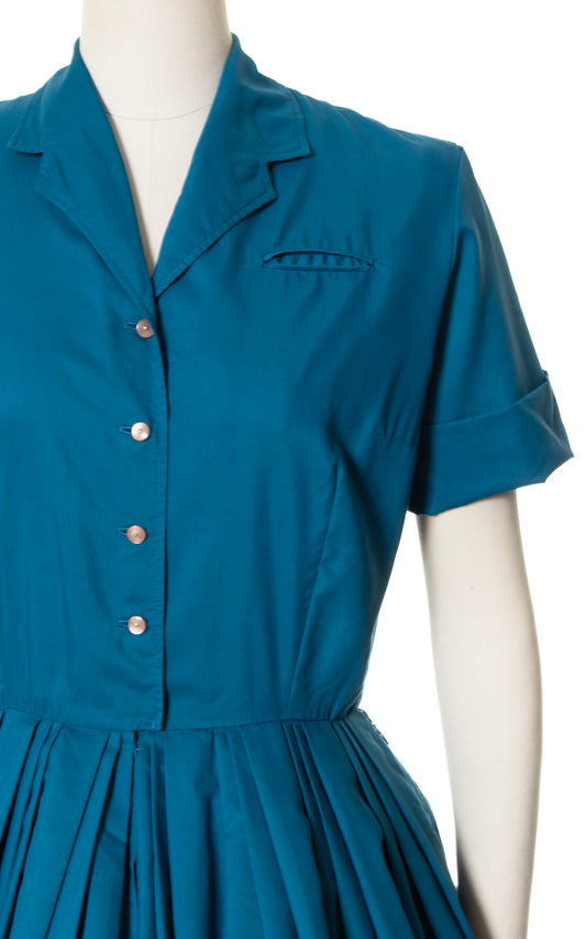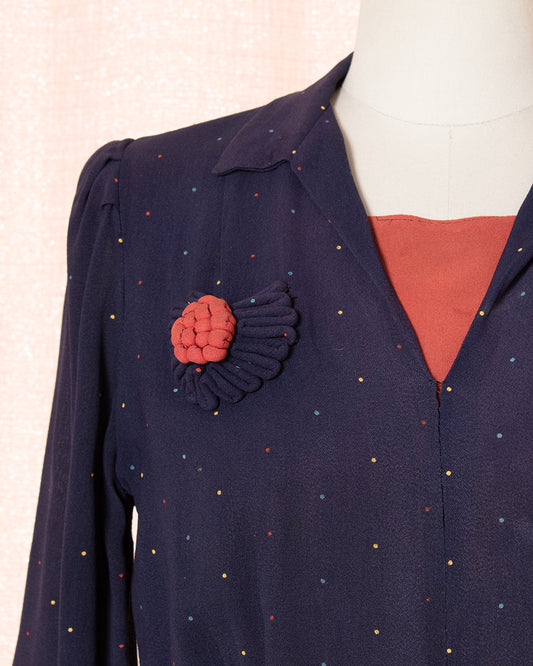 [AS-IS] 1940s Polka Dot Navy Blue Rayon Dress | small