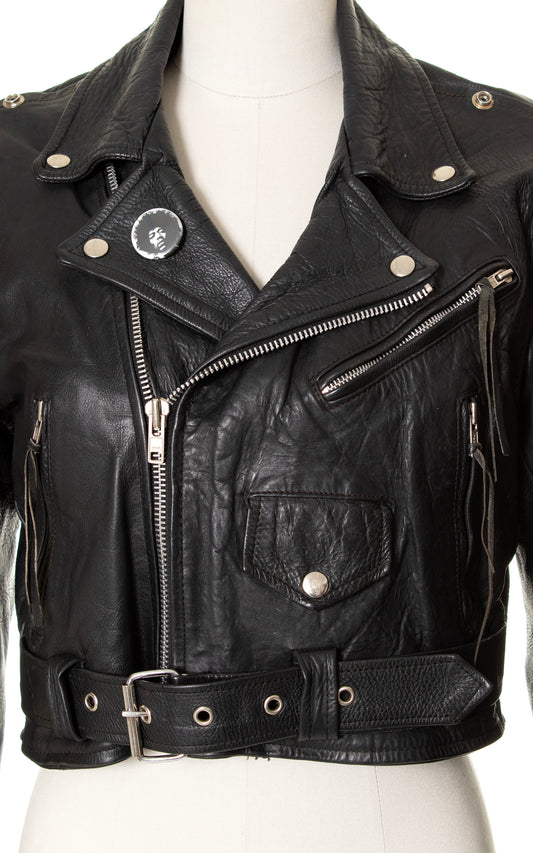 1980s Cropped Black Leather Moto Jacket | medium/large