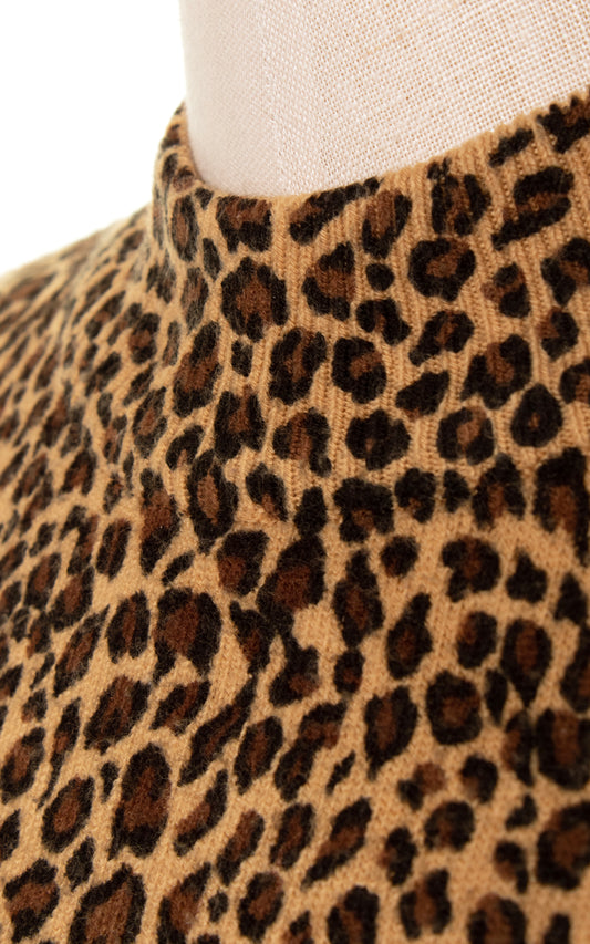 1980s Leopard Print Knit Angora Wool Sweater Top | medium/large