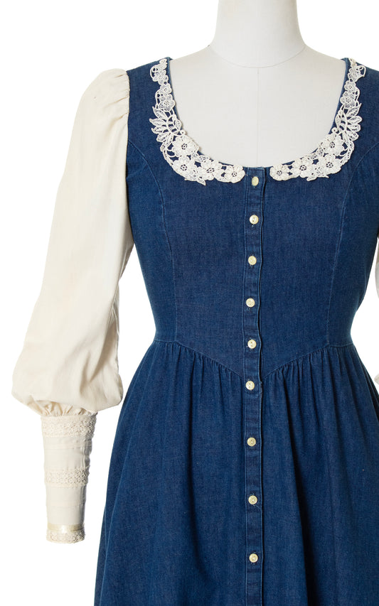 1970s Gunne Sax Style Denim Prairie Dress | small/medium