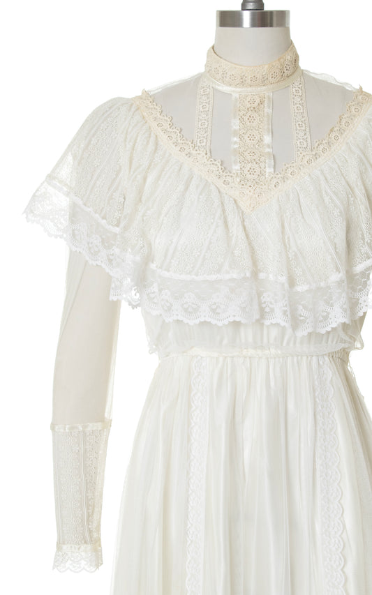 1970s GUNNE SAX Victorian Style Lace Netting Maxi Dress | small