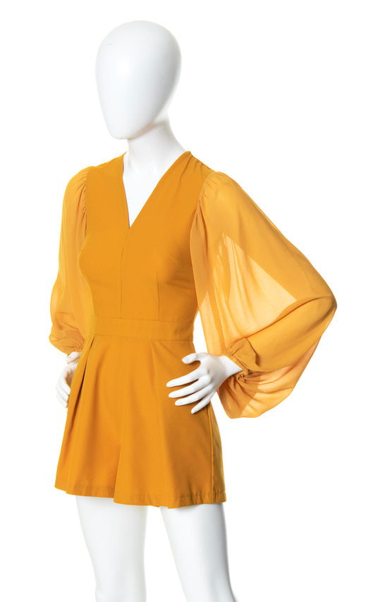 MODERN Golden Mustard Chiffon Balloon Sleeve Romper | x-small
