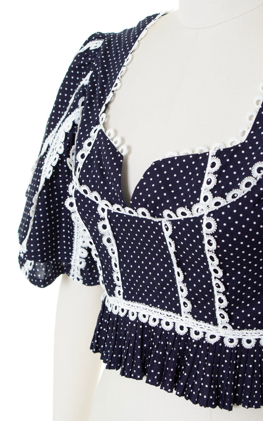 1970s Style Polka Dot Bell Sleeve Crop Top | small