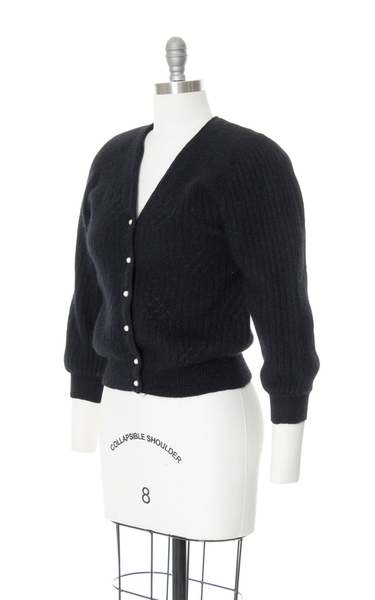 1980s Black Angora Wool Knit Cardigan | small/medium